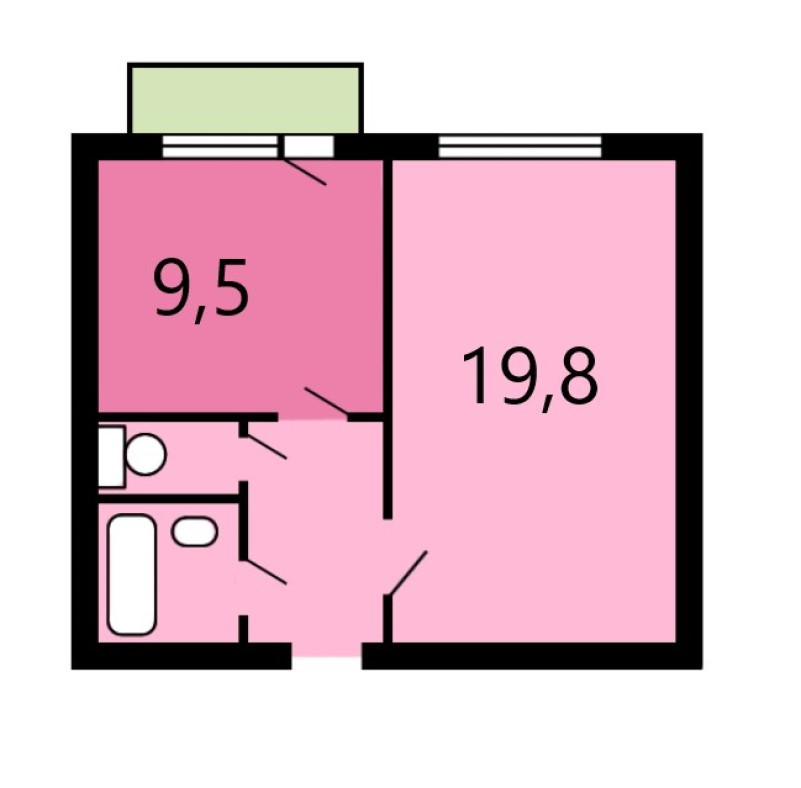 Жилая площадь 19.8 м2