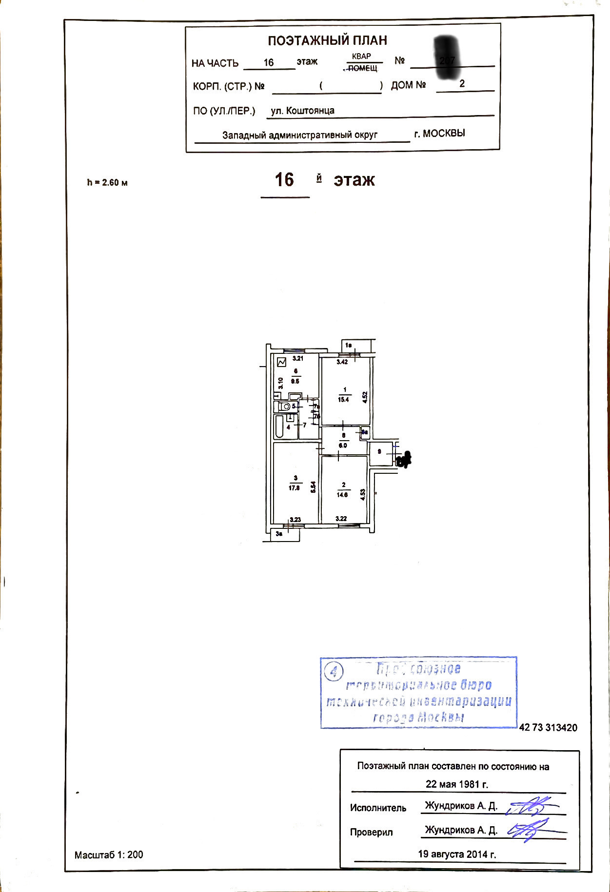 3-комнатная квартира, 74.2 м2, этаж 16 / 20, на продажу в Москве, улица Коштоянца, 2
