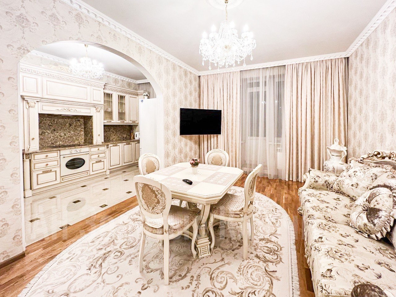 РЕМОНТ: выполнен Евроремонт в стиле современной спокойной классике, ремонт свежий, практически не жили, делали для себя, мебель Италия, плитка Испания и т.д. По планировке сделано:  кухня через арку гостиная, спальня, 2 с/у полноценных ( один с ванной, один с душем).