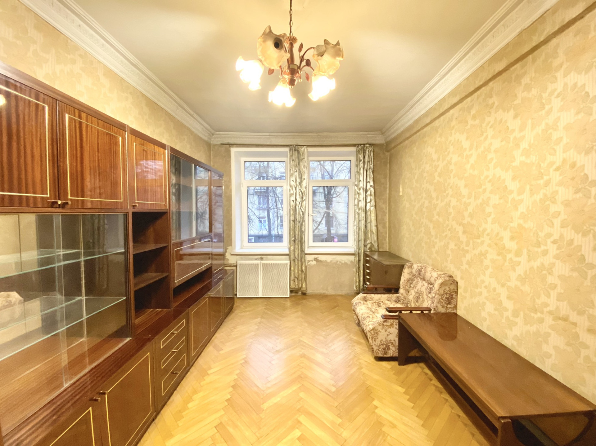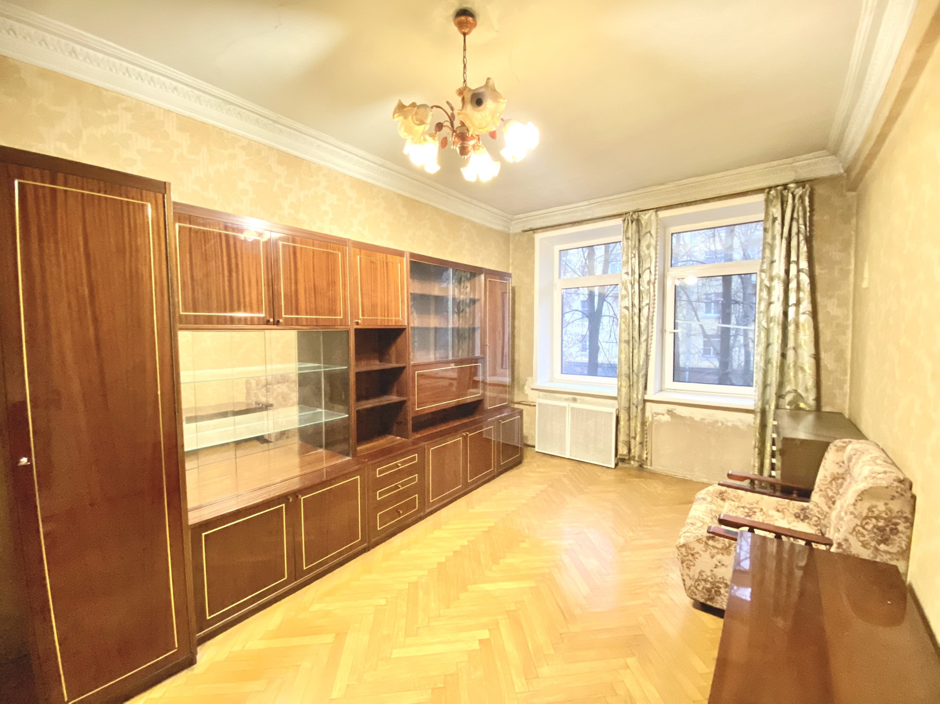 В доме Газ (не газовая колонка), радиаторы в отличном состоянии, окна пластиковые, пол оригинальный паркет, который подлежит реставрации. Состояние: в квартире желательно провести ремонт, но заехать и жить возможно (сдавать в аренду 30-40тр). Мебель и техника остаются новым собственникам.