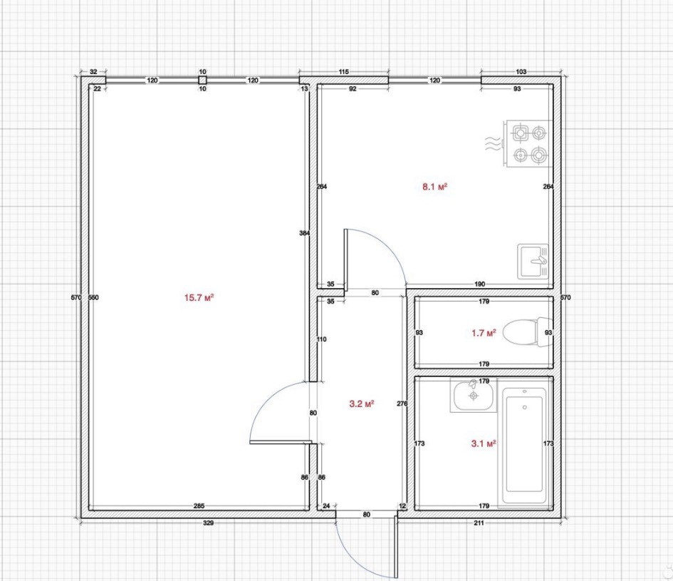 Площадь кухни 8 м2