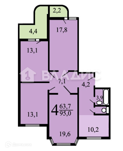Общая площадь 95 м2