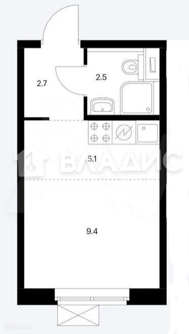 Площадь кухни 3 м2