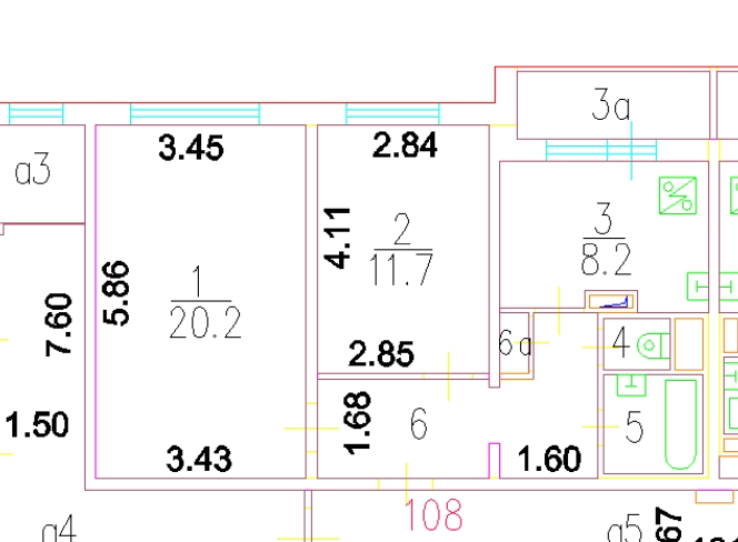 Общая площадь 53.2 м2