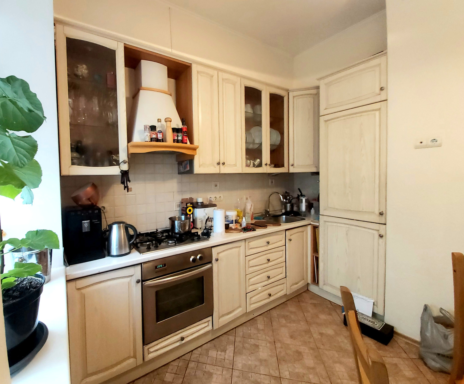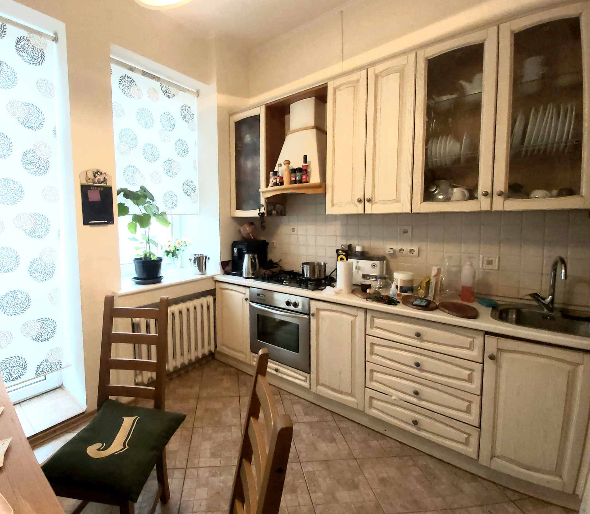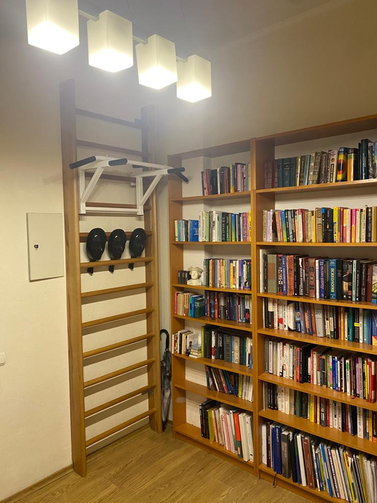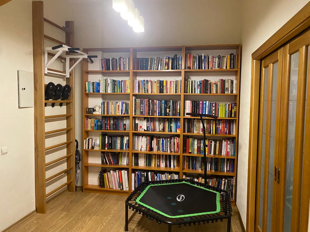 Квартира со стильным ремонтом, библиотекой, полностью  меблирована, оборудована необходимой техникой. Сталинский кирпичный дом, с метровыми кирпичными стенами и отличной звукоизоляцией. Потолки 3,3 м. 7 этаж из 7. Имеется техэтаж, который при желании можно использовать как мансарду.