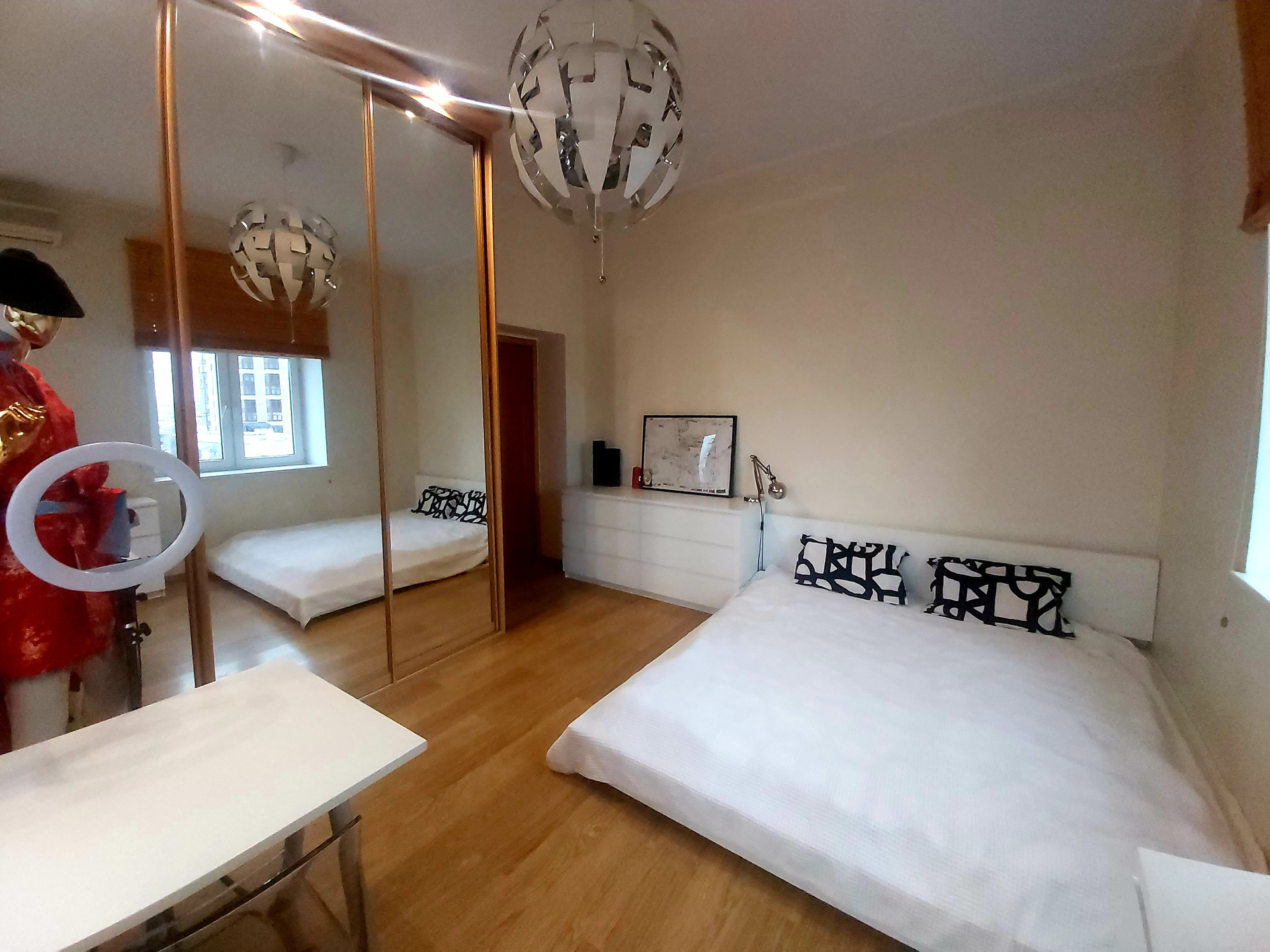 Окна на две стороны. Великолепный вид на Триумф палас, Чапаевский парк и старую Москву. В квартире много воздуха и света. В каждой спальне установлен индивидуальный кондиционер.