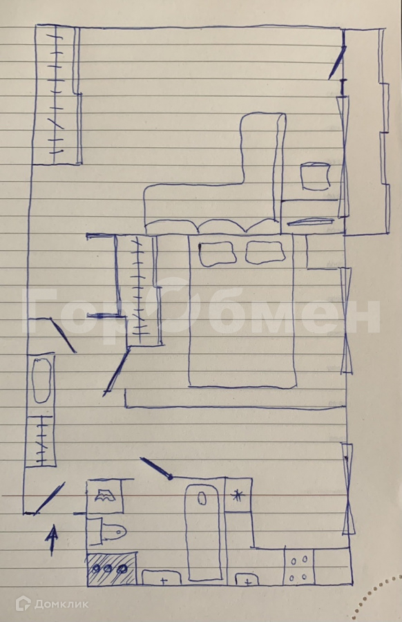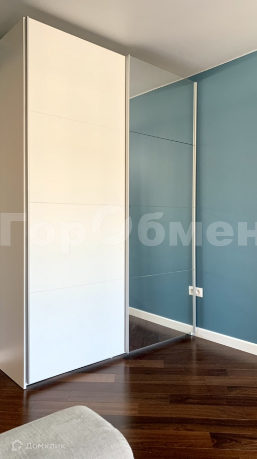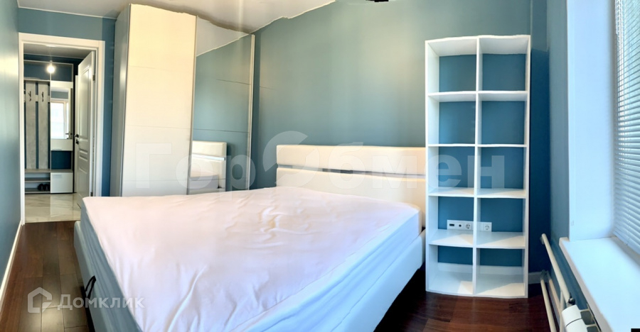 В комнатах - шкафы-купе, кроватью, диван, рабочее место, стеллаж.