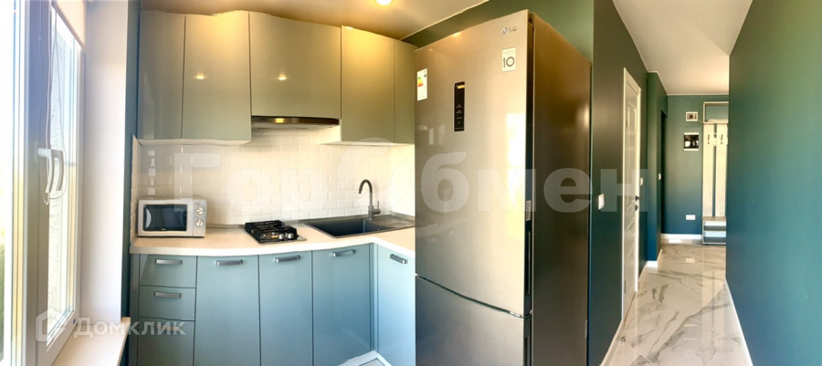 Мебель подобрана под интерьер (остаётся), включая кухонный гарнитур с варочной панелью, вытяжкой и посудомоечной машиной.