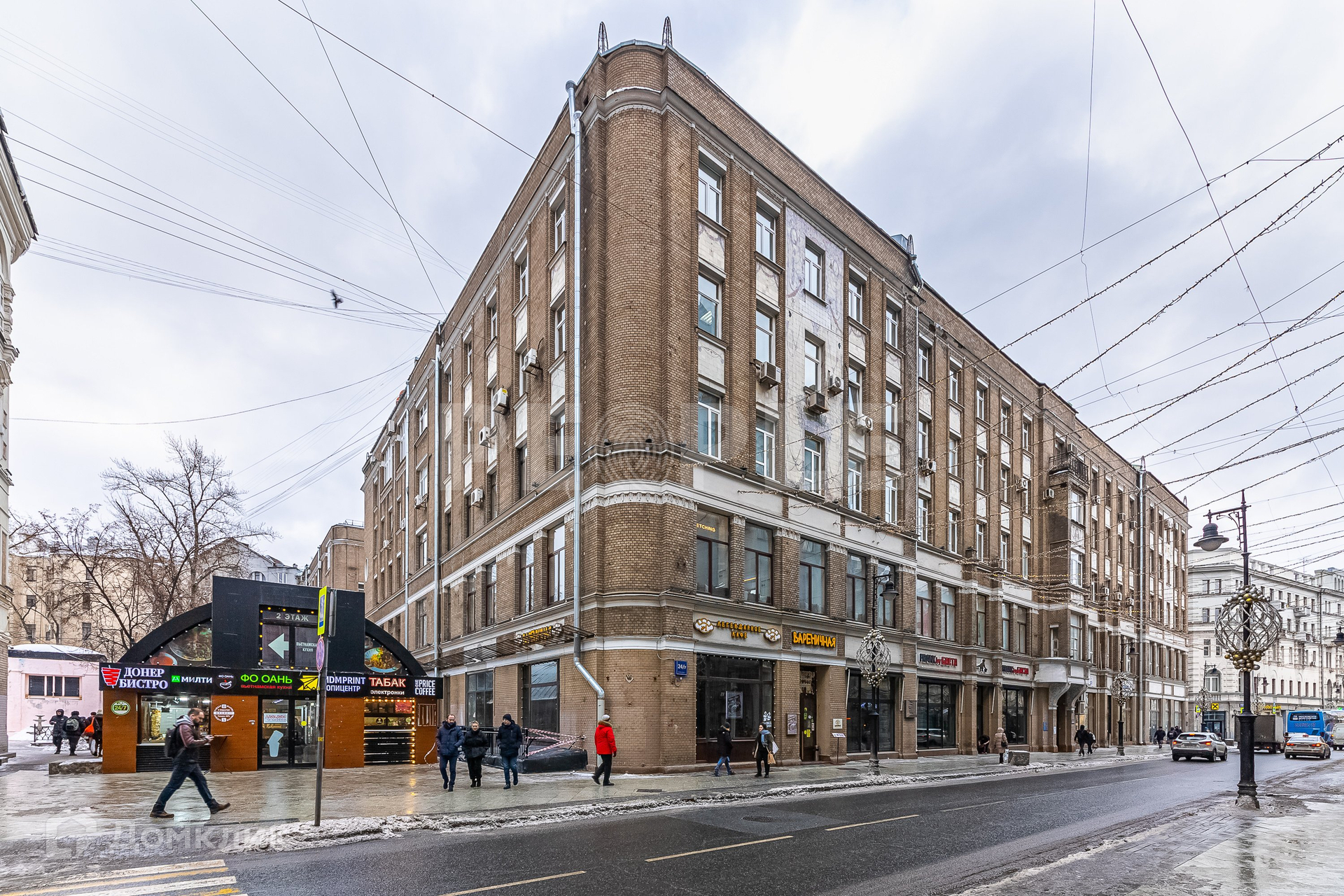 Первые два этажа выделены для магазинов, контор. Остальные жилые. Дом располагается в тихом дворе.