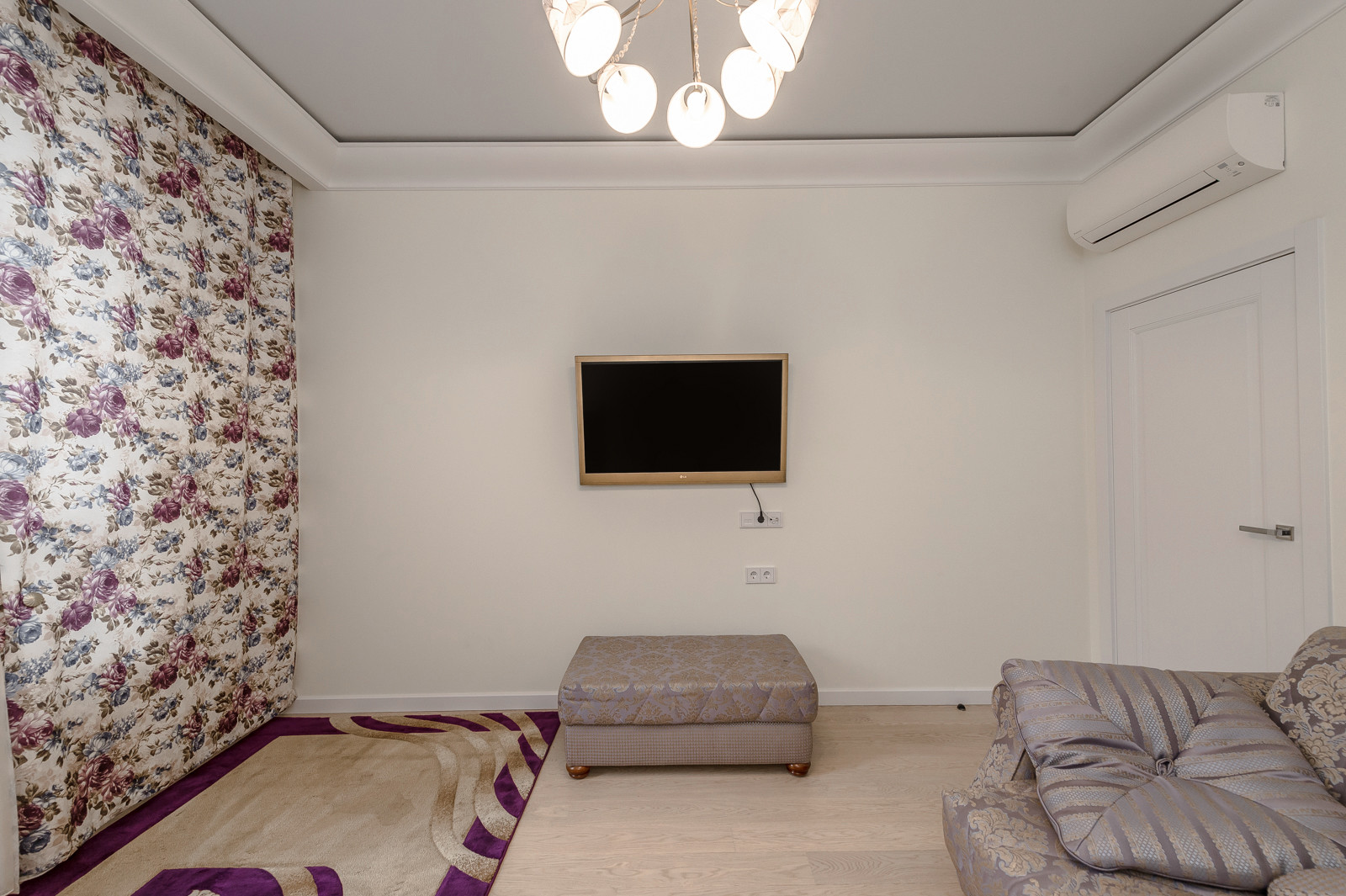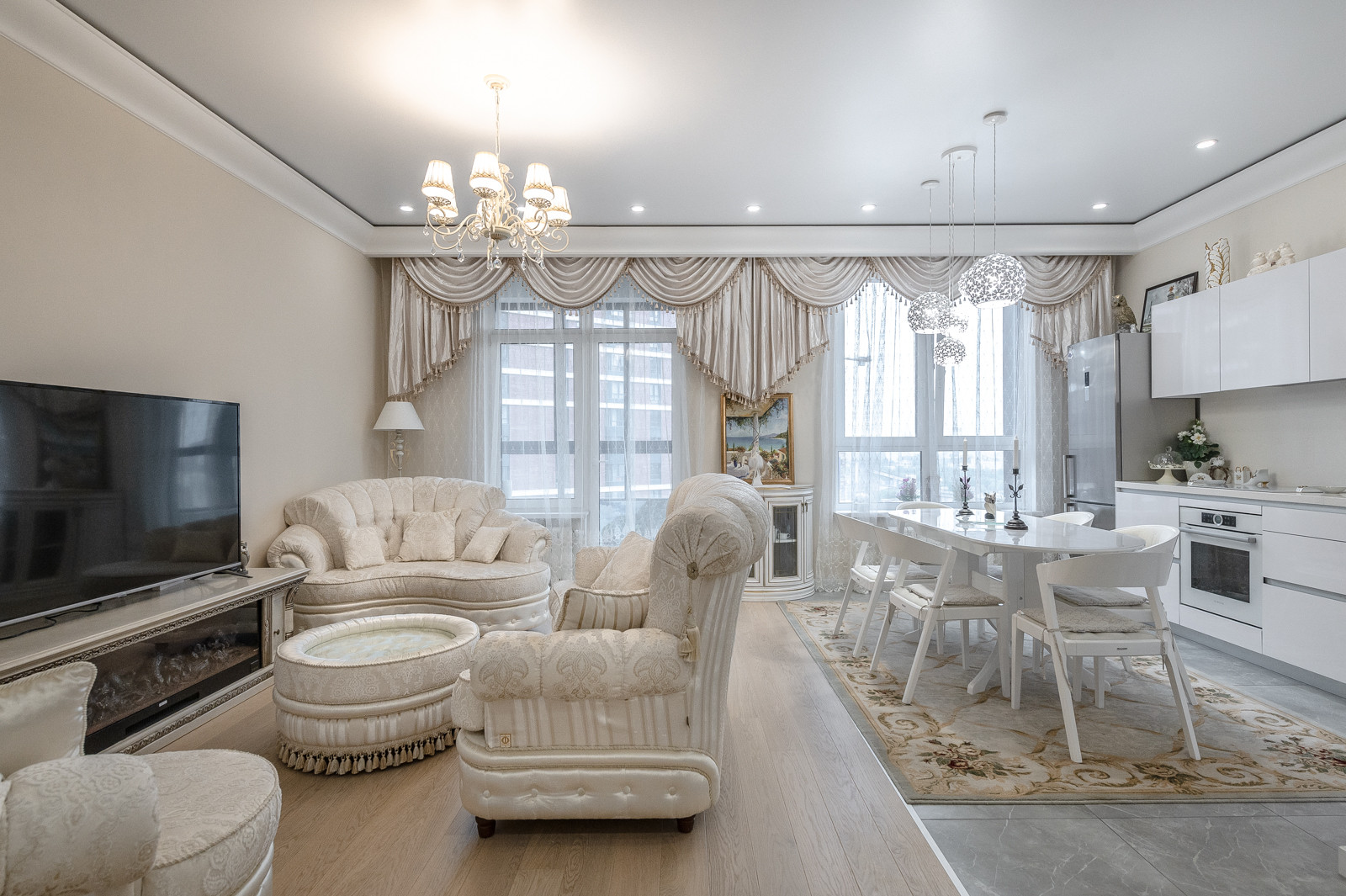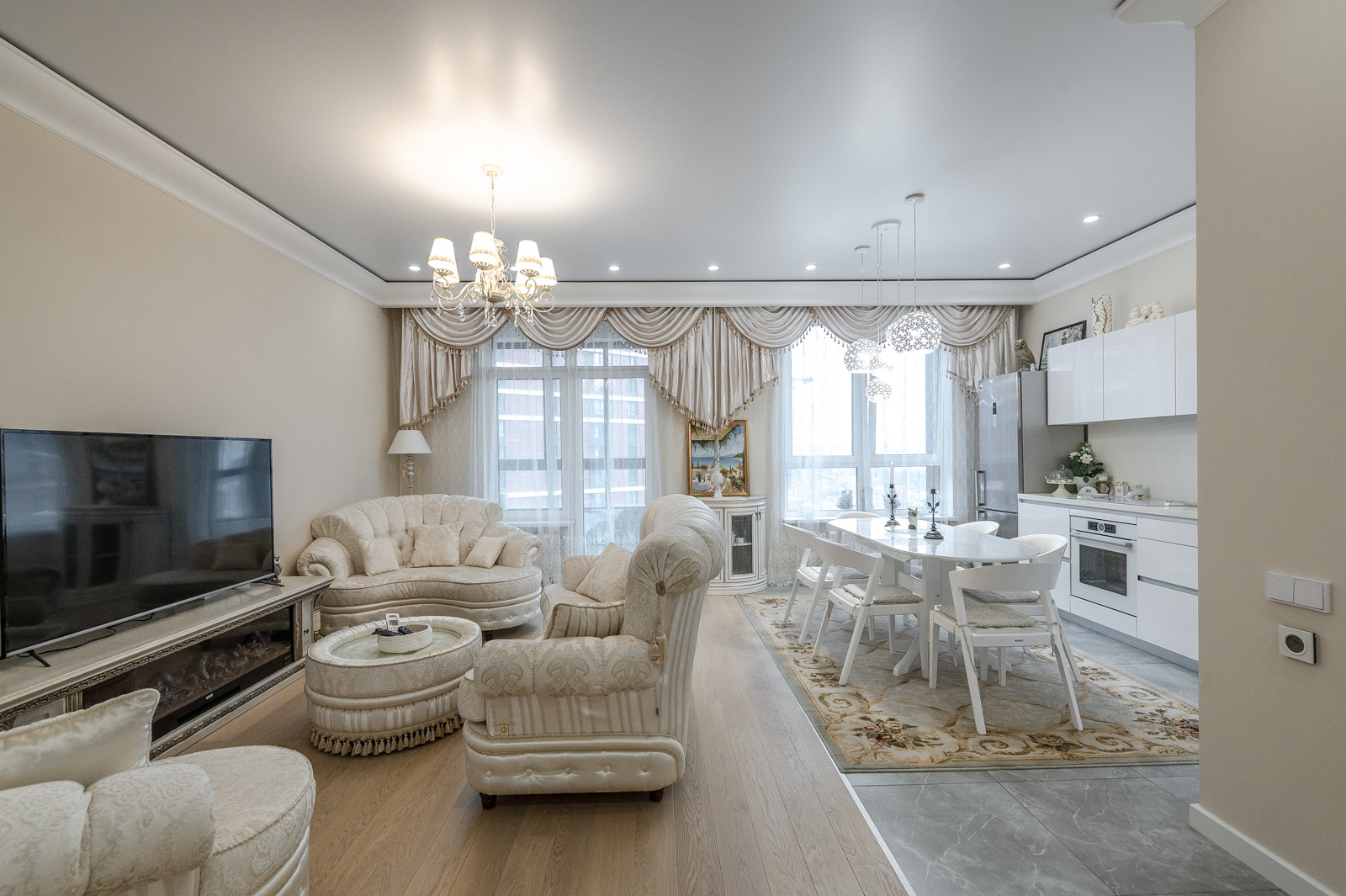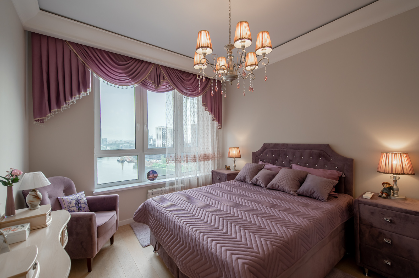 В квартире выполнен дизайнерский ремонт. Функциональная планировка включает: кухня - гостиная 45,6 км. встроенной мебелью и всей необходимой бытовой техникой, спальню с панорамным видом на реку и двуспальной кроватью, гардеробную и кладовая комнаты.