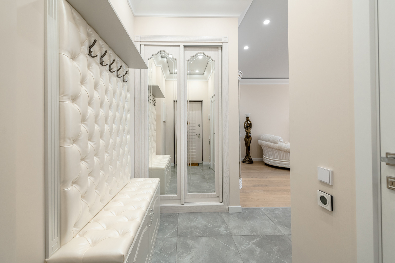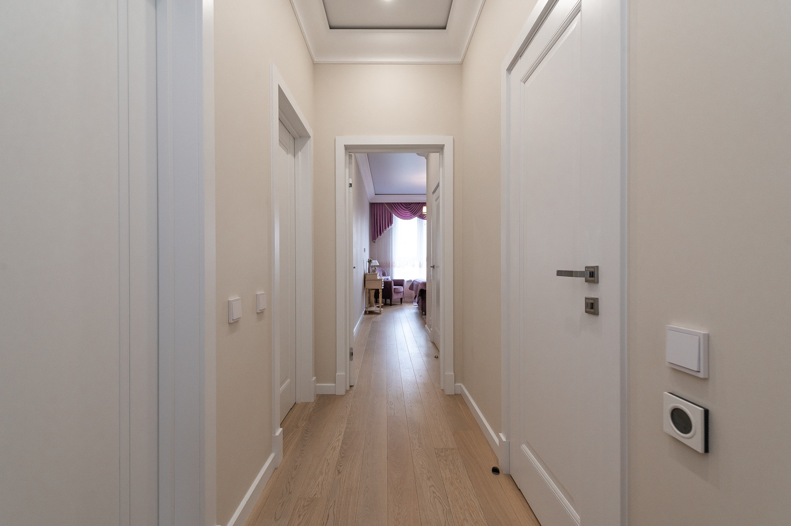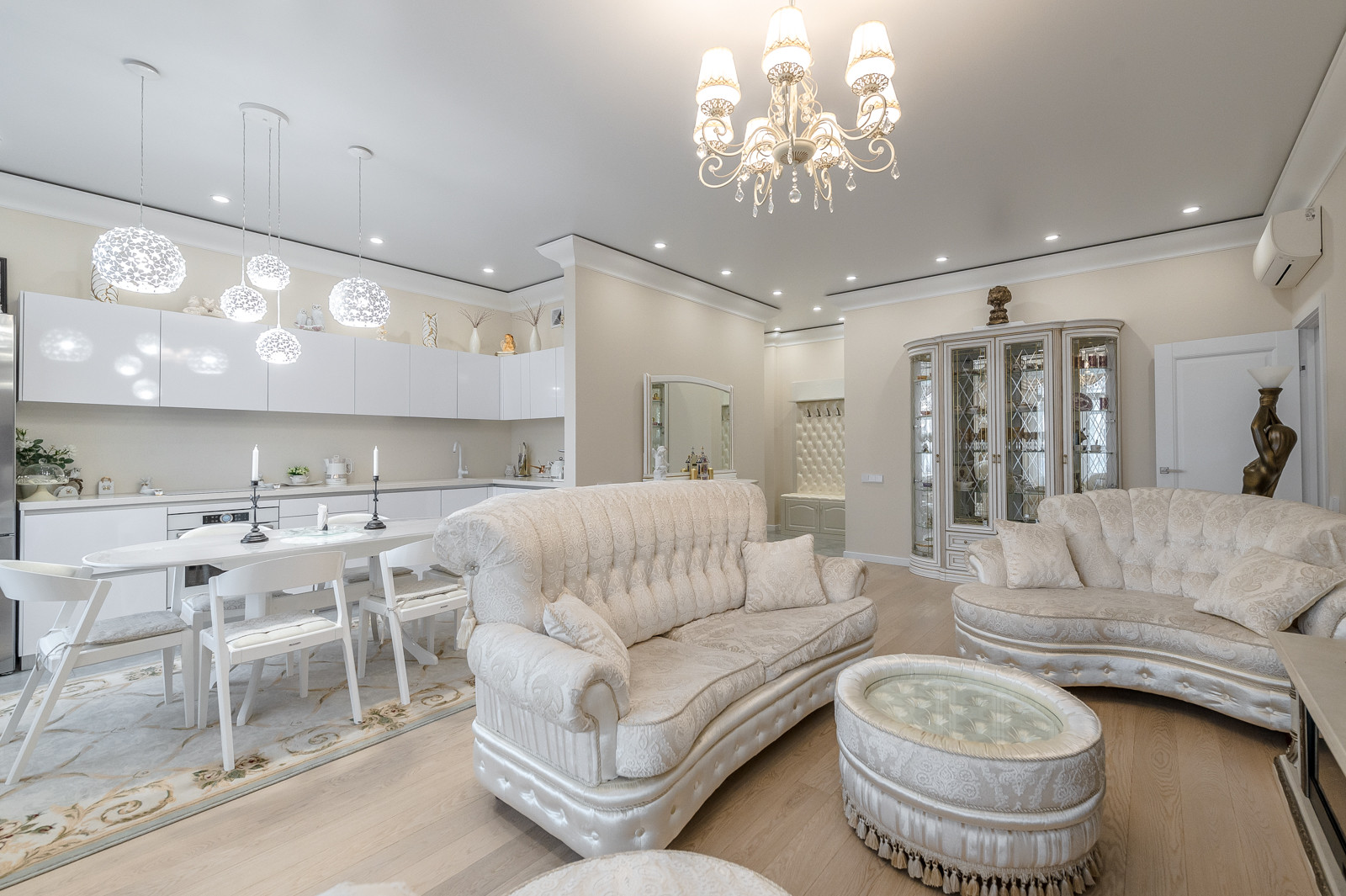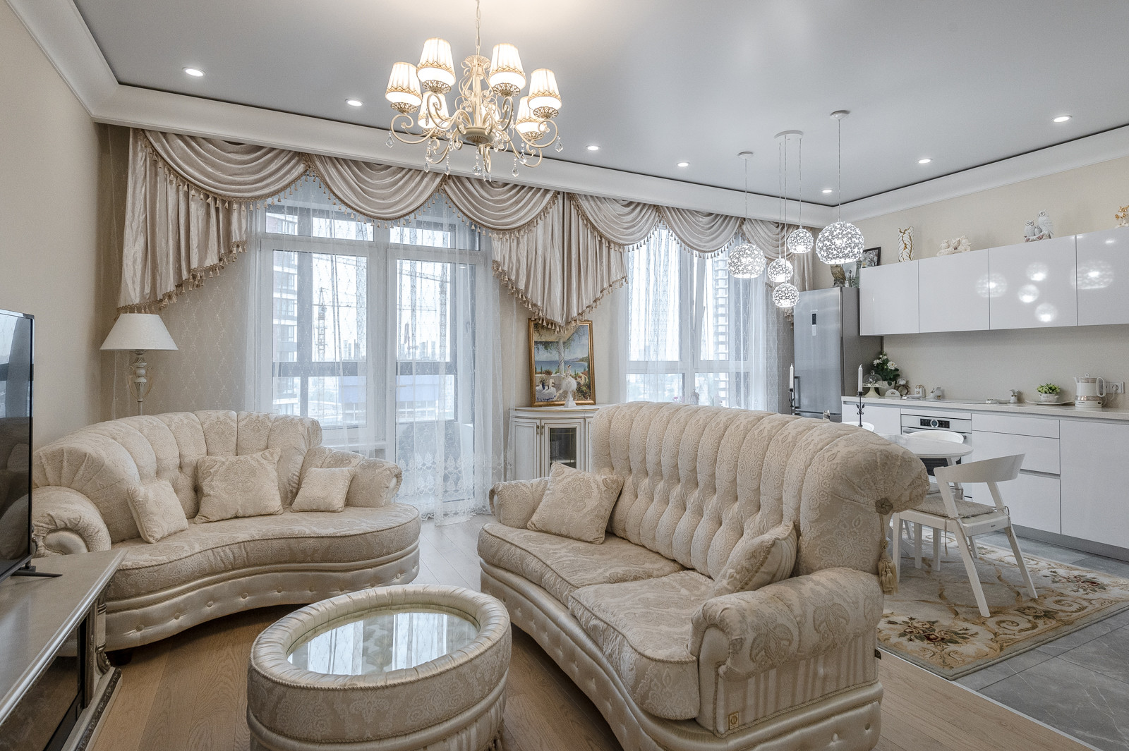 В квартире выполнен дизайнерский ремонт. Функциональная планировка включает: кухня - гостиная 45,6 км. встроенной мебелью и всей необходимой бытовой техникой, спальню с панорамным видом на реку и двуспальной кроватью, гардеробную и кладовая комнаты.