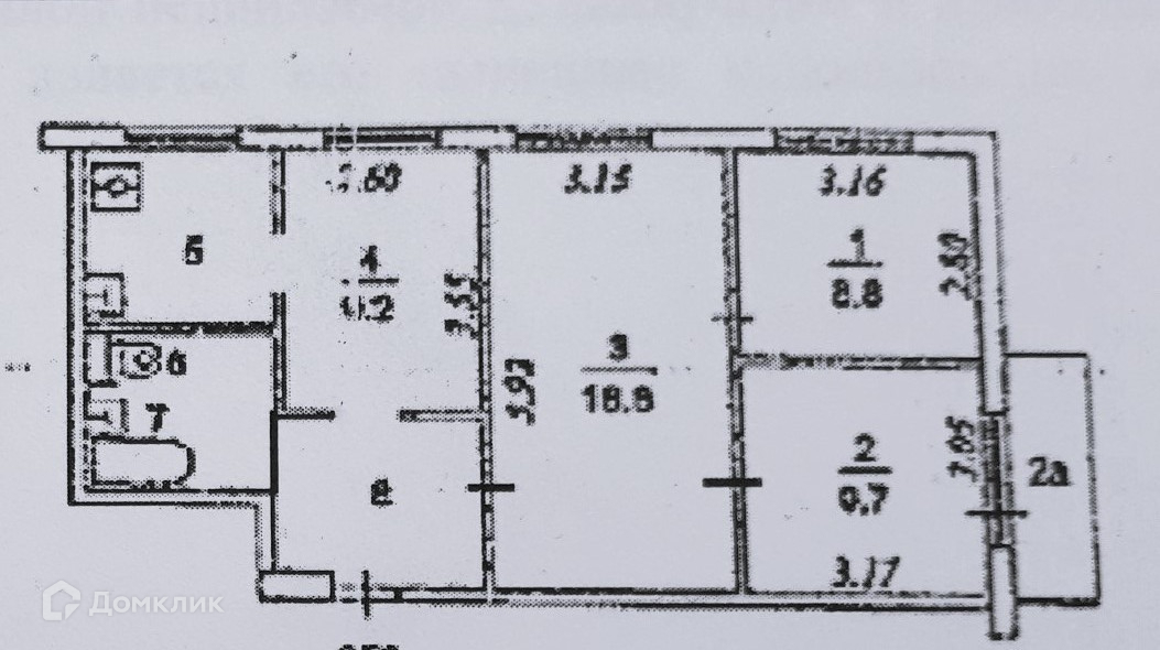 Общая площадь 62.7 м2