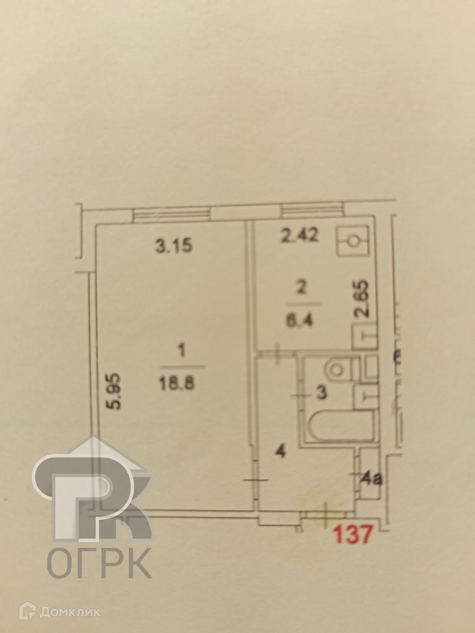 Общая площадь 32.2 м2