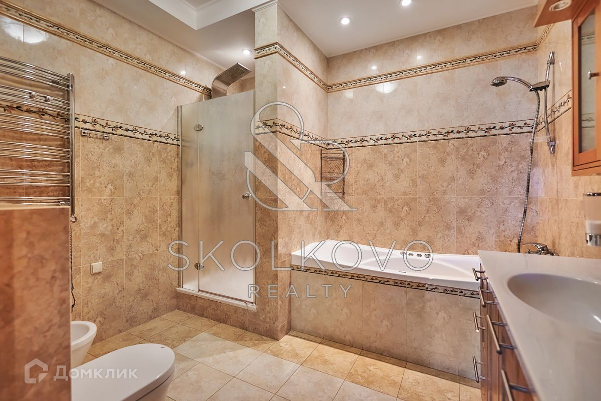 В квартире функциональная планировка: просторный холл с встроенными глубокими шкафами, кухня-столовая, гостиная, мастер-спальня с с/у и большой гардеробной, вторая спальня, кабинет, второй с/у, гардеробная и прачечная.