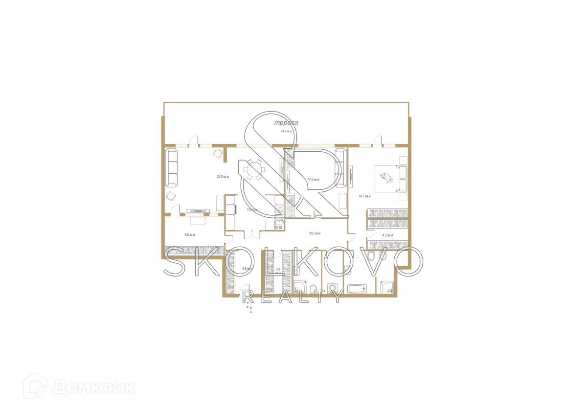 Квартира полностью укомплектована итальянской мебелью премиум-класса.