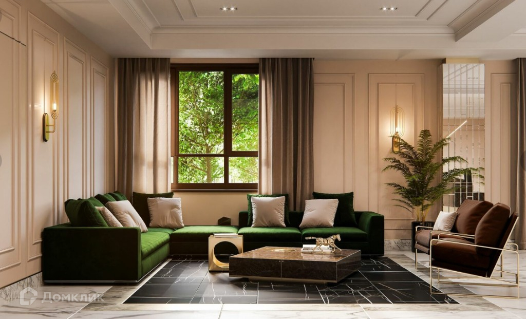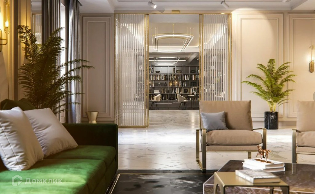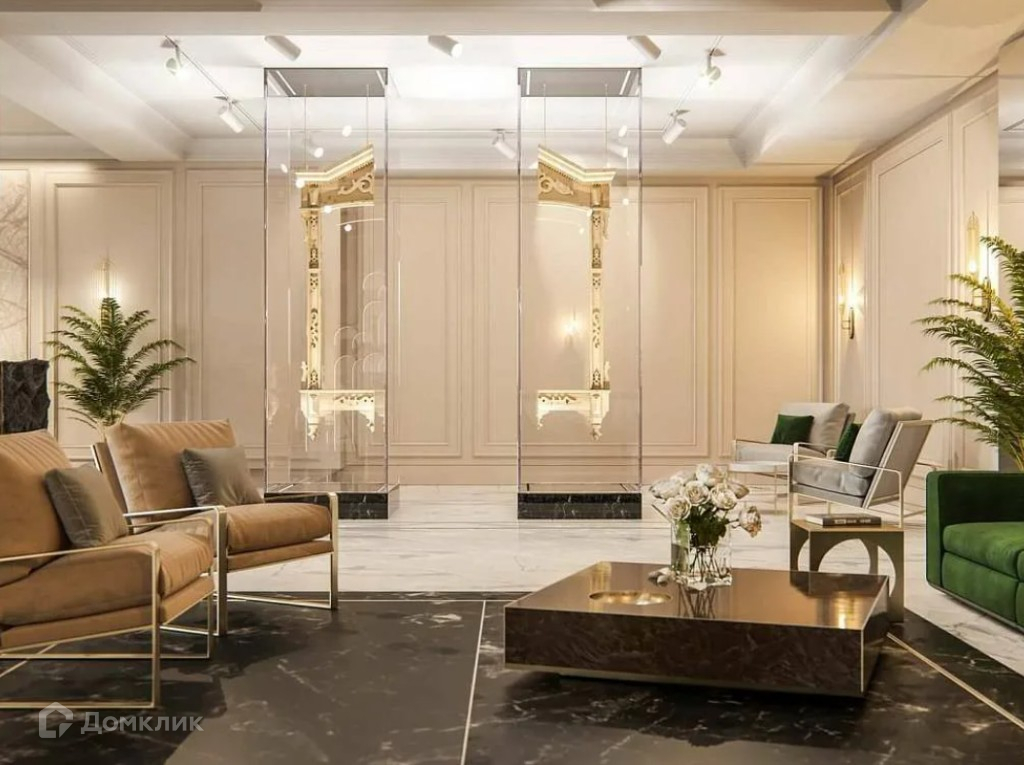 Апартаменты располагаются на 13 этаже 14 этажного монолитно-кирпичного дома. Внутренняя инфраструктура ЖК включает спортивно-оздоровительный комплекс с полноразмерным бассейном длиной 25 метров, VIP-ресторан с летней террасой, премиальный салон красоты и SPA-комплекс. В доме предусмотрены beauty room, baby room, мини-кинотеатр и коворкинг, а также помещения для хранения колясок, велосипедов и спортивного инвентаря. Дизайнерское лобби для деловых встреч и общения. Скоростные бесшумные лифты OTIS. Фасад дома сделан из натурального мрамора в стиле арт-деко, эффектные входные группы и террасы в апартаментах подчеркивает высокий статус и привилегированное расположение дома.