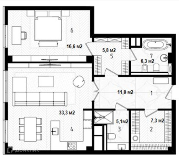 Развитая инфраструктура- в шаговой доступности магазины, поликлиники, школы, детские сады, престижные университеты, ТЦ “Павелецкая Плаза”, парки, рестораны, музеи, театры, галереи, живописная набережная Москвы-реки.