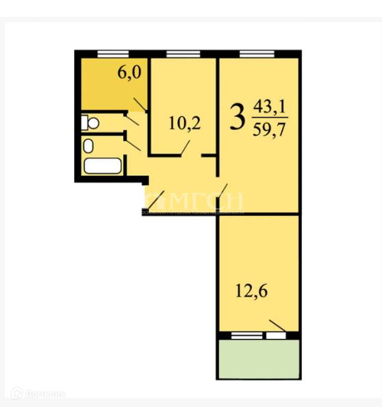 Жилая площадь 43 м2
