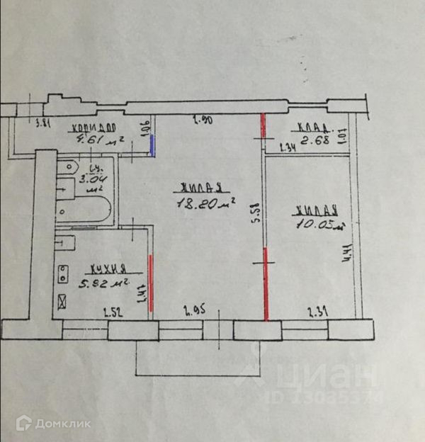 Общая площадь 43.4 м2
