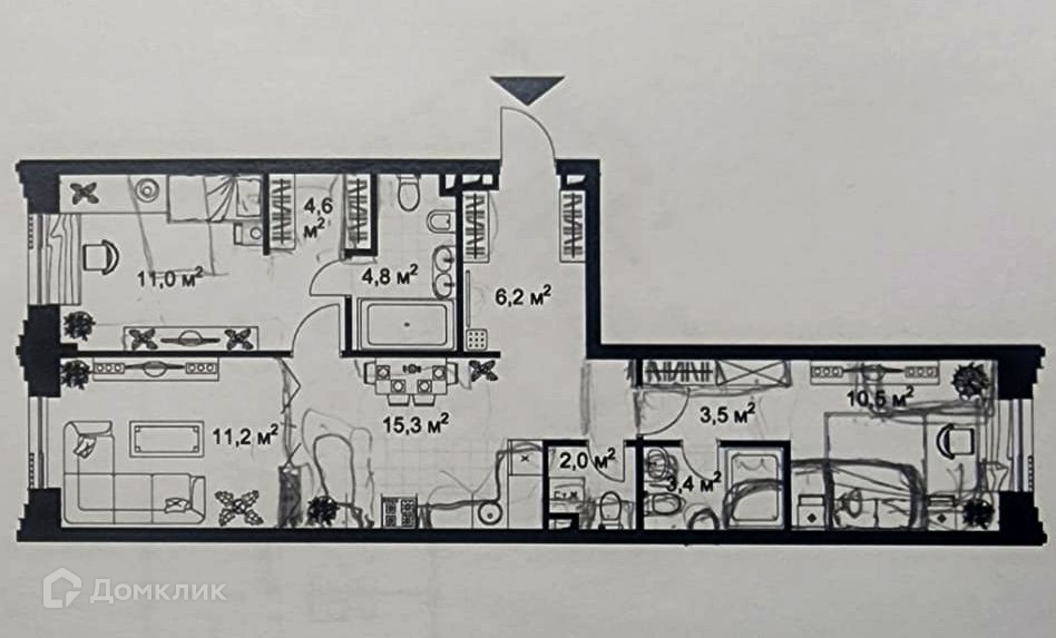 Жилая площадь 22.2 м2