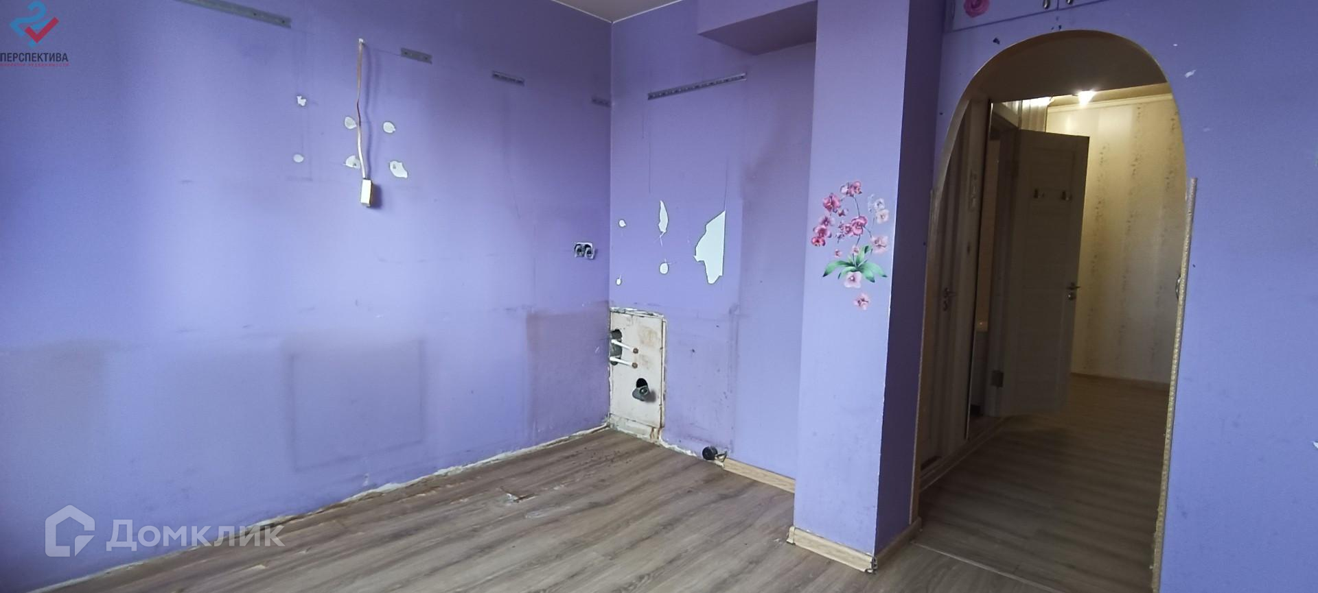 - стены оклеены обоями, на полу ламинат,