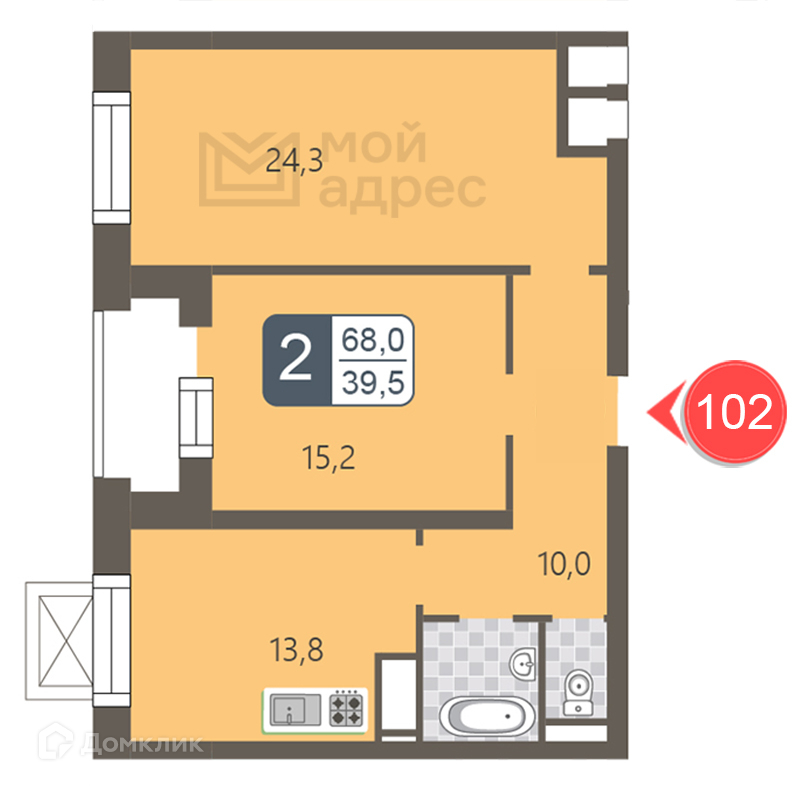 Общая площадь 68 м2