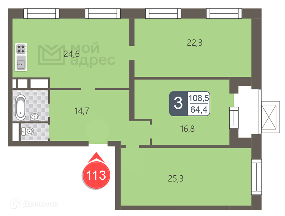Общая площадь 108.5 м2