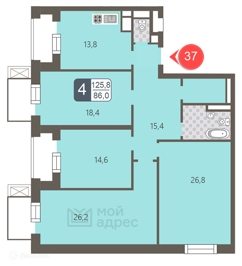 Общая площадь 125.8 м2