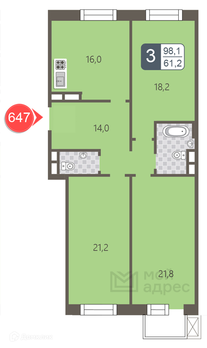 Общая площадь 98.1 м2