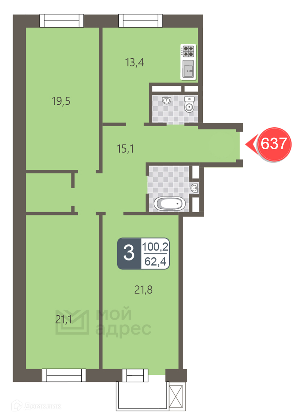 Общая площадь 100.2 м2