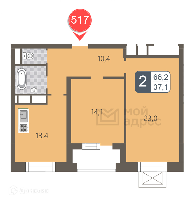 Общая площадь 66.2 м2