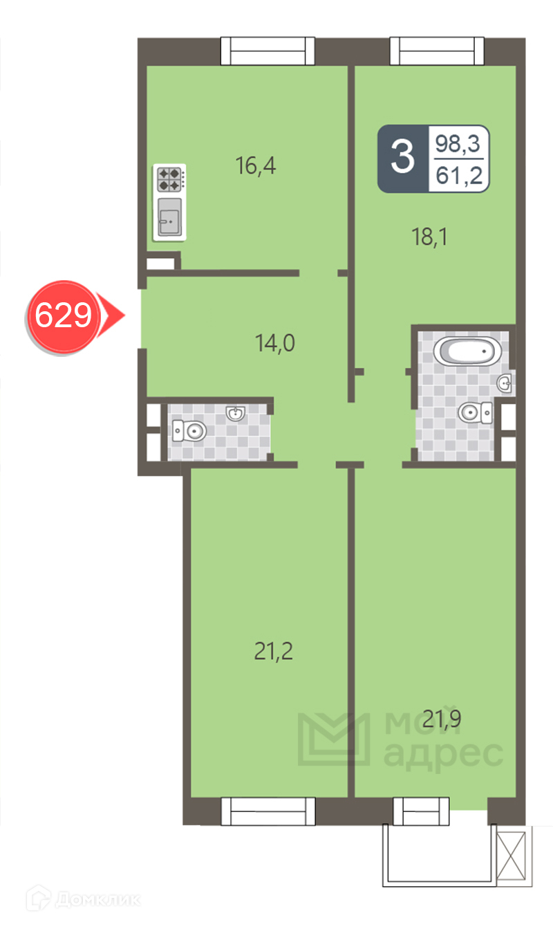 Общая площадь 98.3 м2