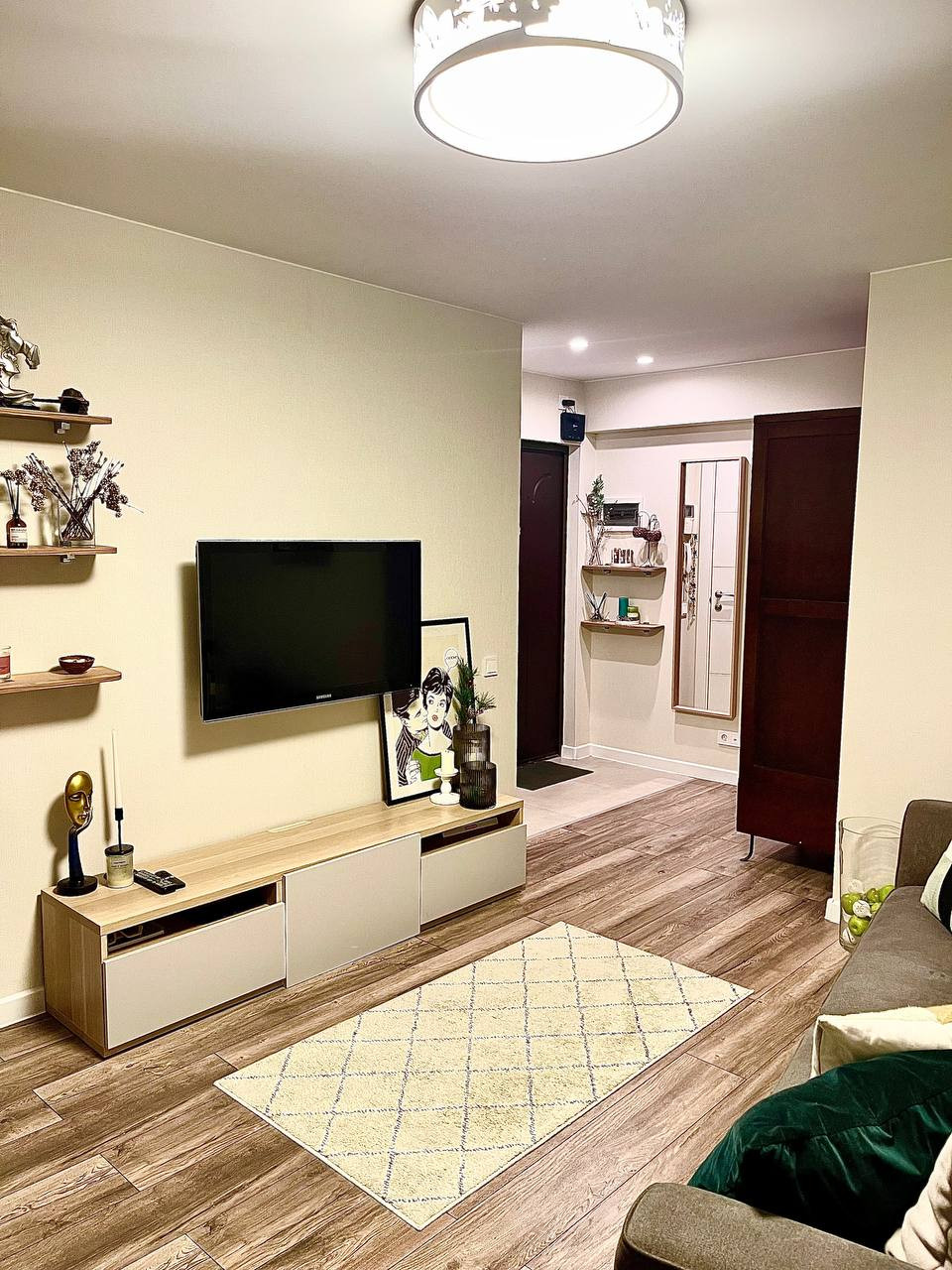 Уютная зона спальни с гардеробной и совмещенная кухня-гостиная. Ближайшее метро – 10 минут пешком. Развитая инфраструктура: 4 школы, магазины, салоны красоты, кафе/рестораны, музейно-выставочное пространство и парк отдыха ВДНХ в шаговой доступности. Удобный выезд на проспект Мира и ТТК. Идеально подойдет для молодой семейной пары или же как готовый бизнес под аренду. Никаких вложений квартира не требует.