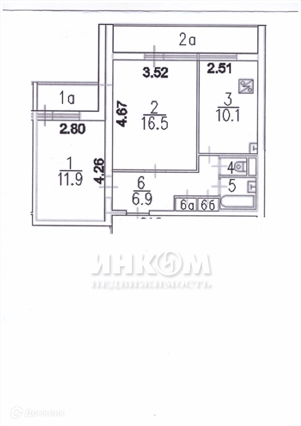 Общая площадь 53.9 м2