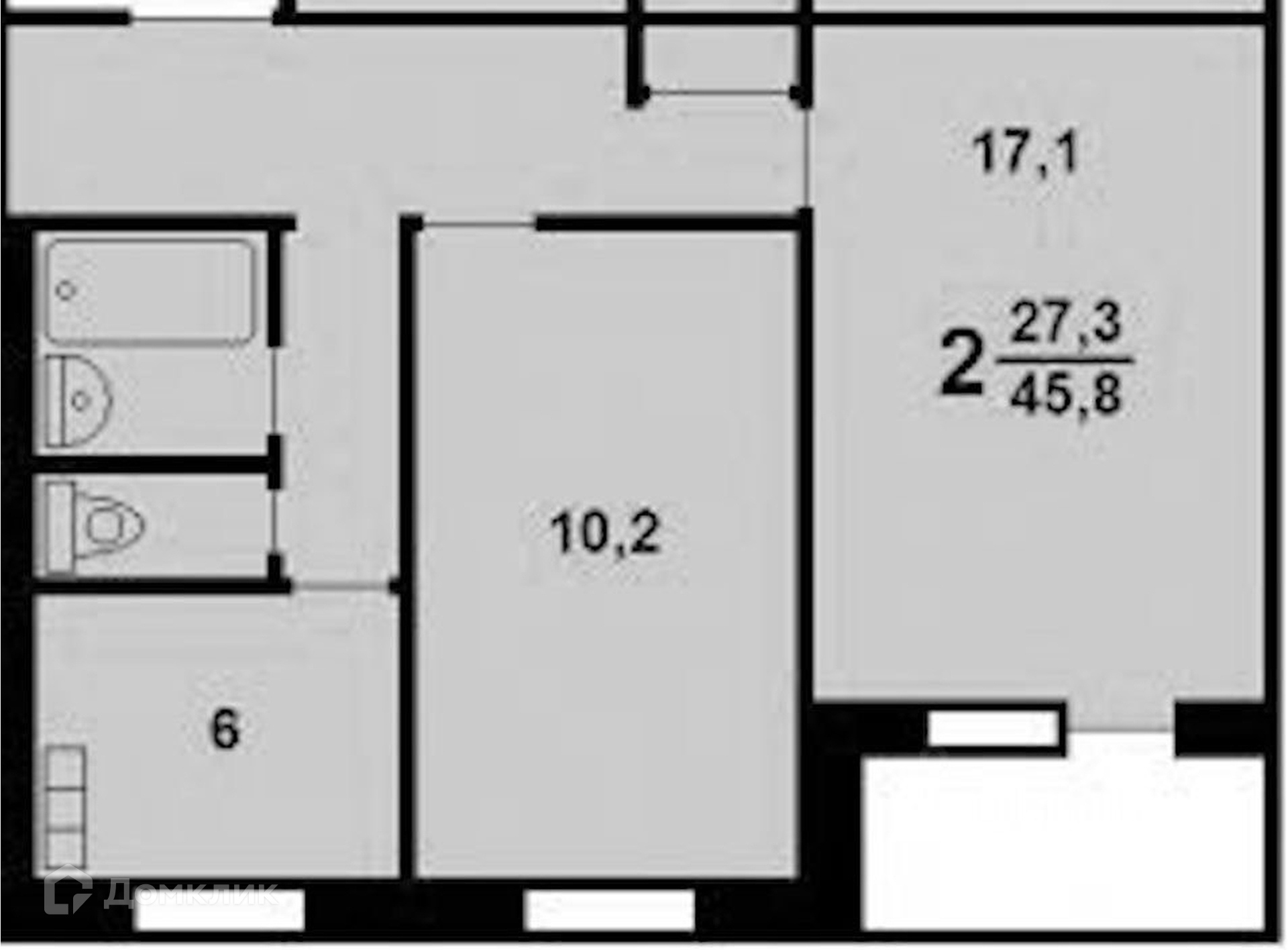 Общая площадь 44.3 м2