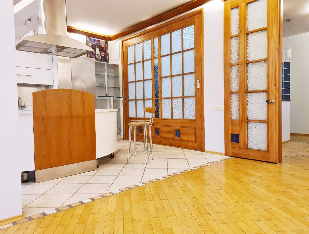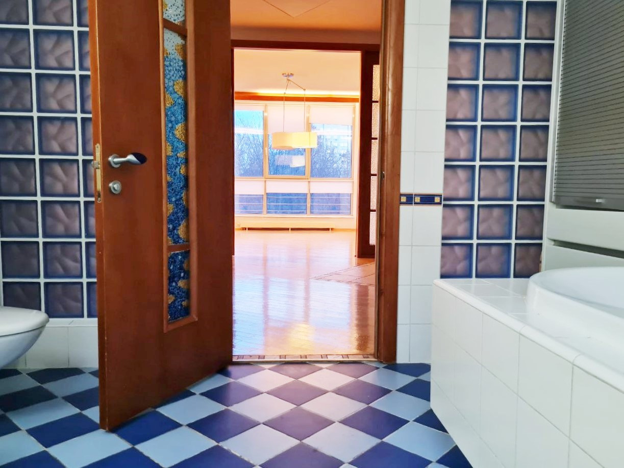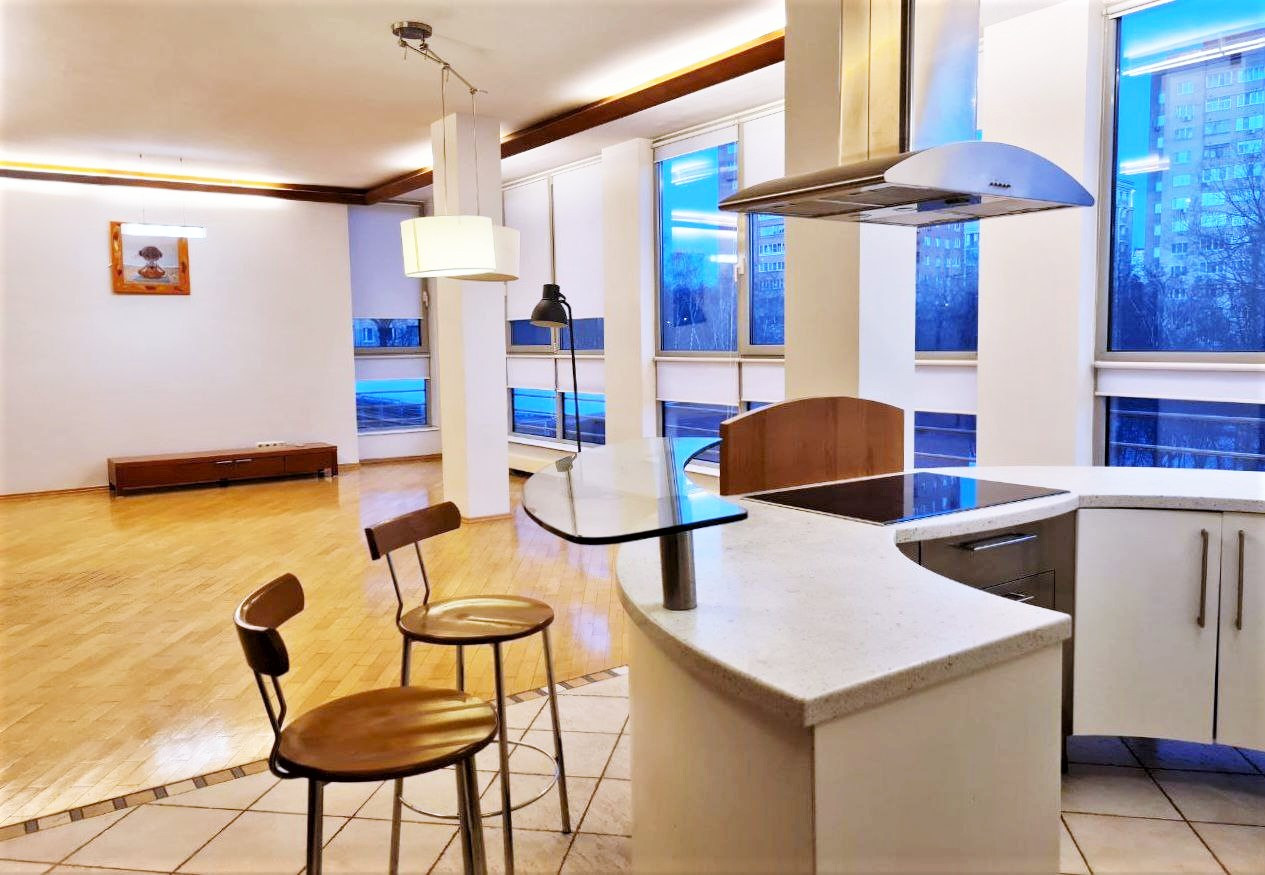 Авторский дизайн: огромная кухня-гостиная с панорамным остеклением; 3 изолированных спальни отделены от гостиной кабинетом; 2 гардеробные, 2 просторных санузла, удобная прихожая. Все межкомнатные перегородки - из кирпича. Квартира полностью оборудована встроенной итальянской мебелью и технически оснащена. Толстые стены по периметру, высокие потолки, большие окна и прозрачные вставки способствуют естественному освещению в дневное время и настоящему уюту - в вечернее.