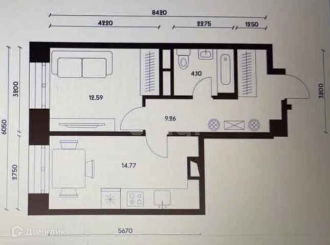 Предлагается Вашему вниманию евродвухкомнатная квартира на 6 этаже, общей площадью 41,6 кВ.м. в ЖК "Домашний" Без отделки, есть возможность осуществить ваши самые креативные дизайнерские задумки.