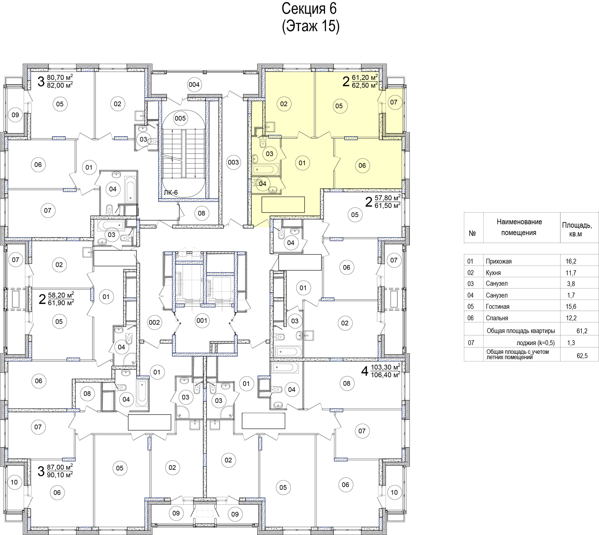 Общая площадь 62.5 м2