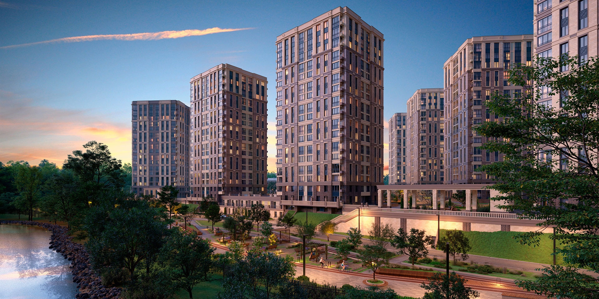 На территории ЖК находится собственный детский сад, просторный благоустроенный двор с детскими и спортивными площадками, лавочками и дорожками для прогулок, подземный паркинг, магазины, салоны красоты