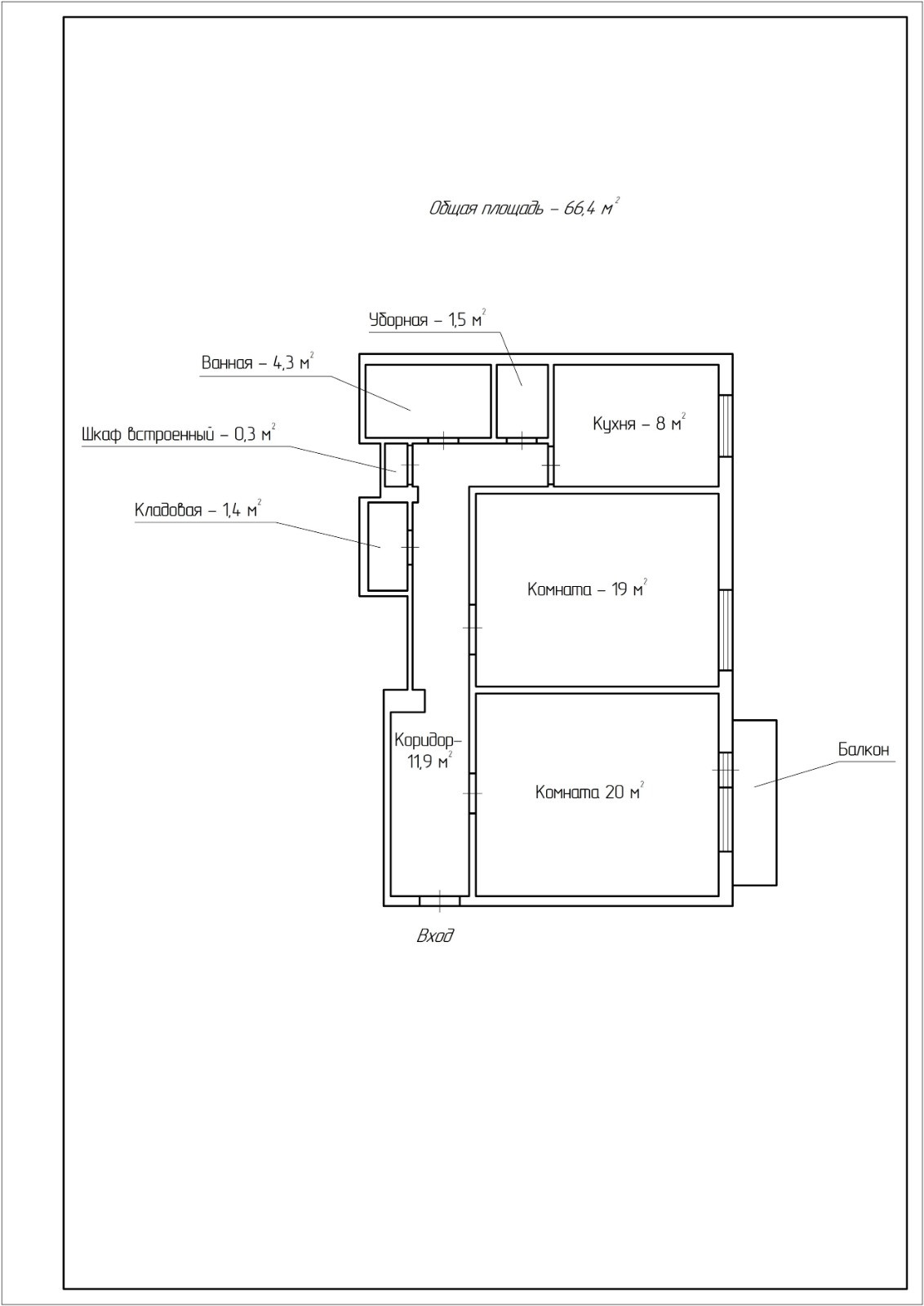 Общая площадь 66.4 м2