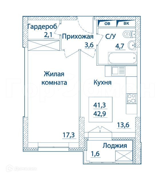 Общая площадь 43 м2