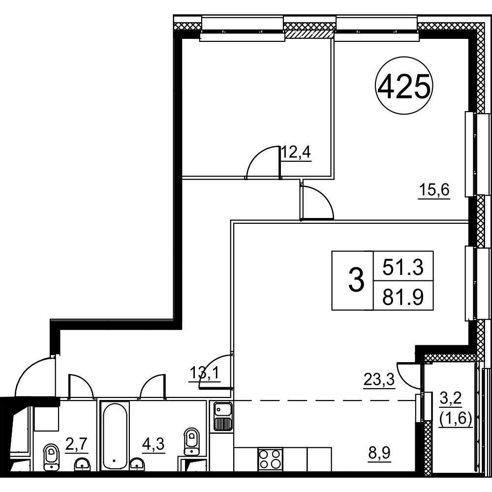 Общая площадь 82.2 м2