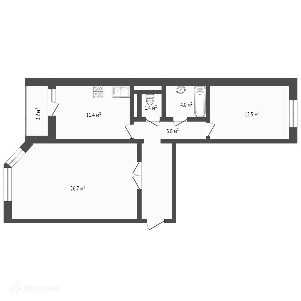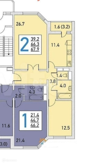 Общая площадь 67.8 м2