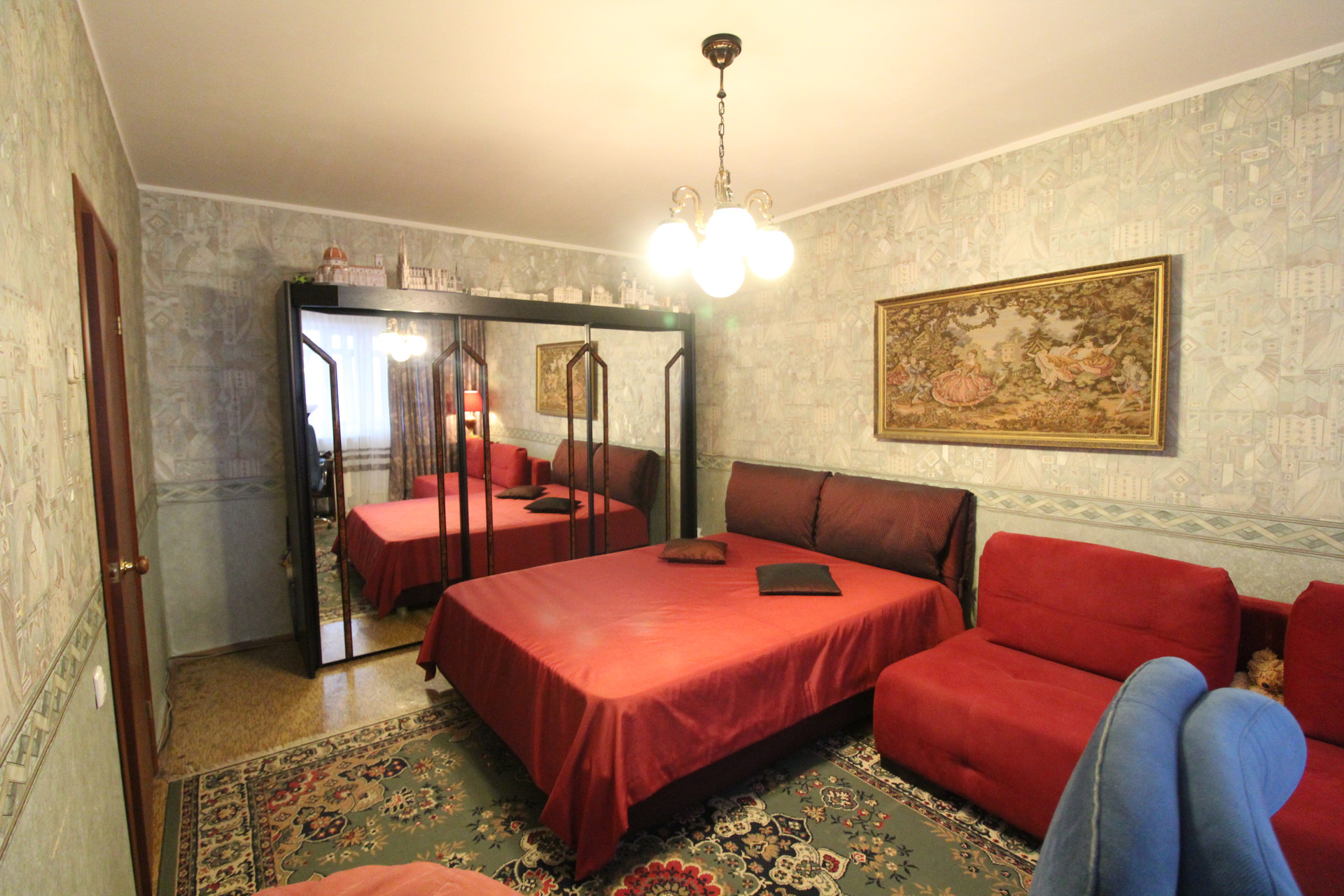 В квартире просторный коридор , огромная комната с выходом на лоджию.
