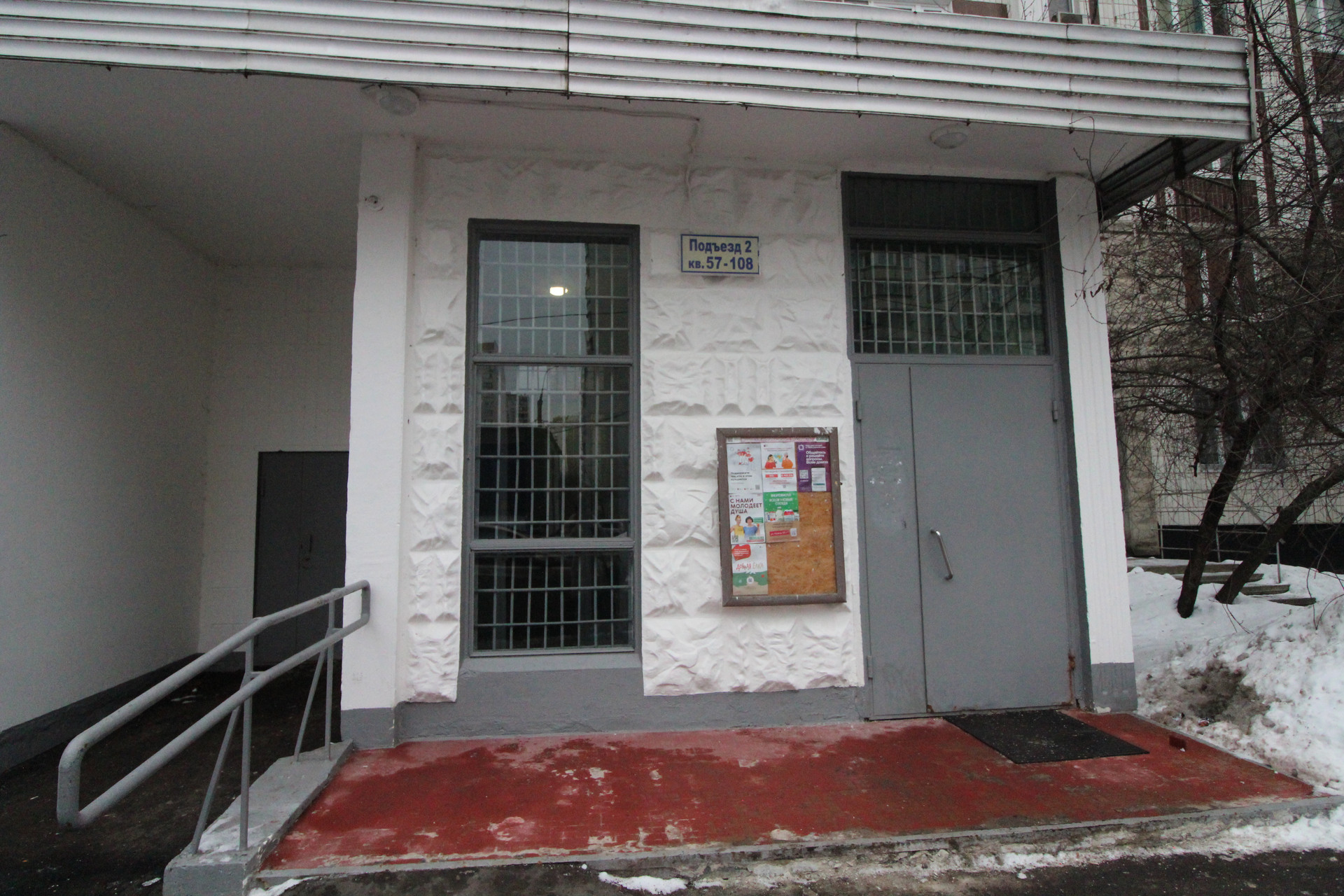 В доме чистый подъезд .