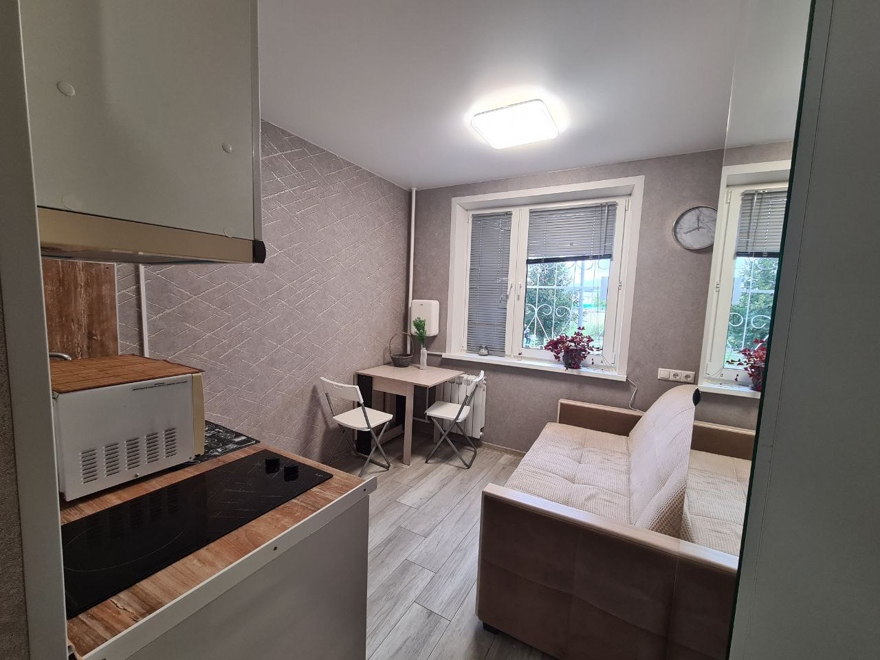 ПРОДАЕТСЯ уютная, ГОТОВАЯ студия 13,5 кв.м с ремонтом и мебелью! Весь ремонт сделан качественно,продумано, делали для себя. ЕСТЬ МЕБЕЛЬ: душевая кабина, унитаз, раковина, диван, шкаф, стол, 2 стула, кухонный гарнитур. ОСТАЁТСЯ ВСЯ ТЕХНИКА: стиральная машинка, чайник, микроволновка, электрическая плита, новый очиститель воздуха!