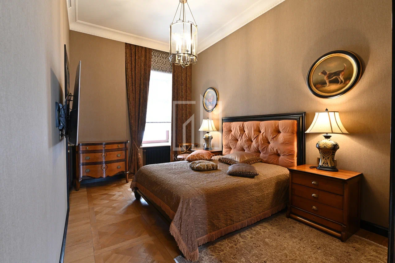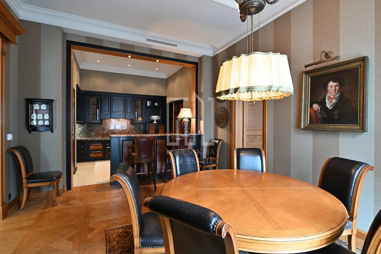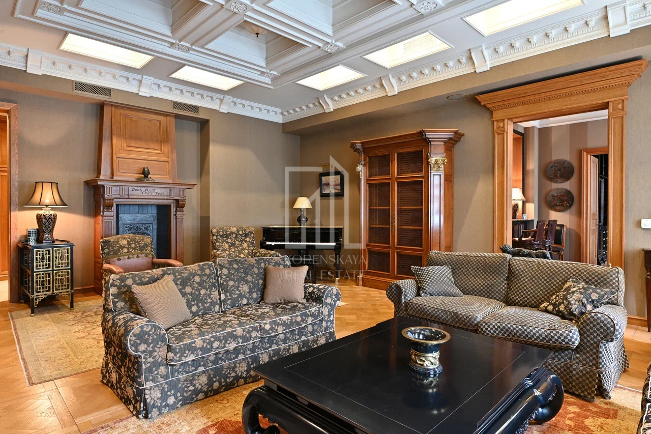 Предлагается для продажи 4-х комнатная квартира общей площадью 161,6 м.кв, в Доходном доме Гордона или "Доме со Львами", располеженном в тихом переулке между улицами Новый Арбат и Поварская.