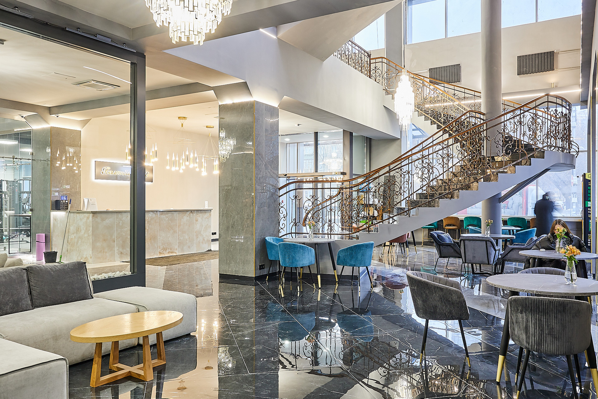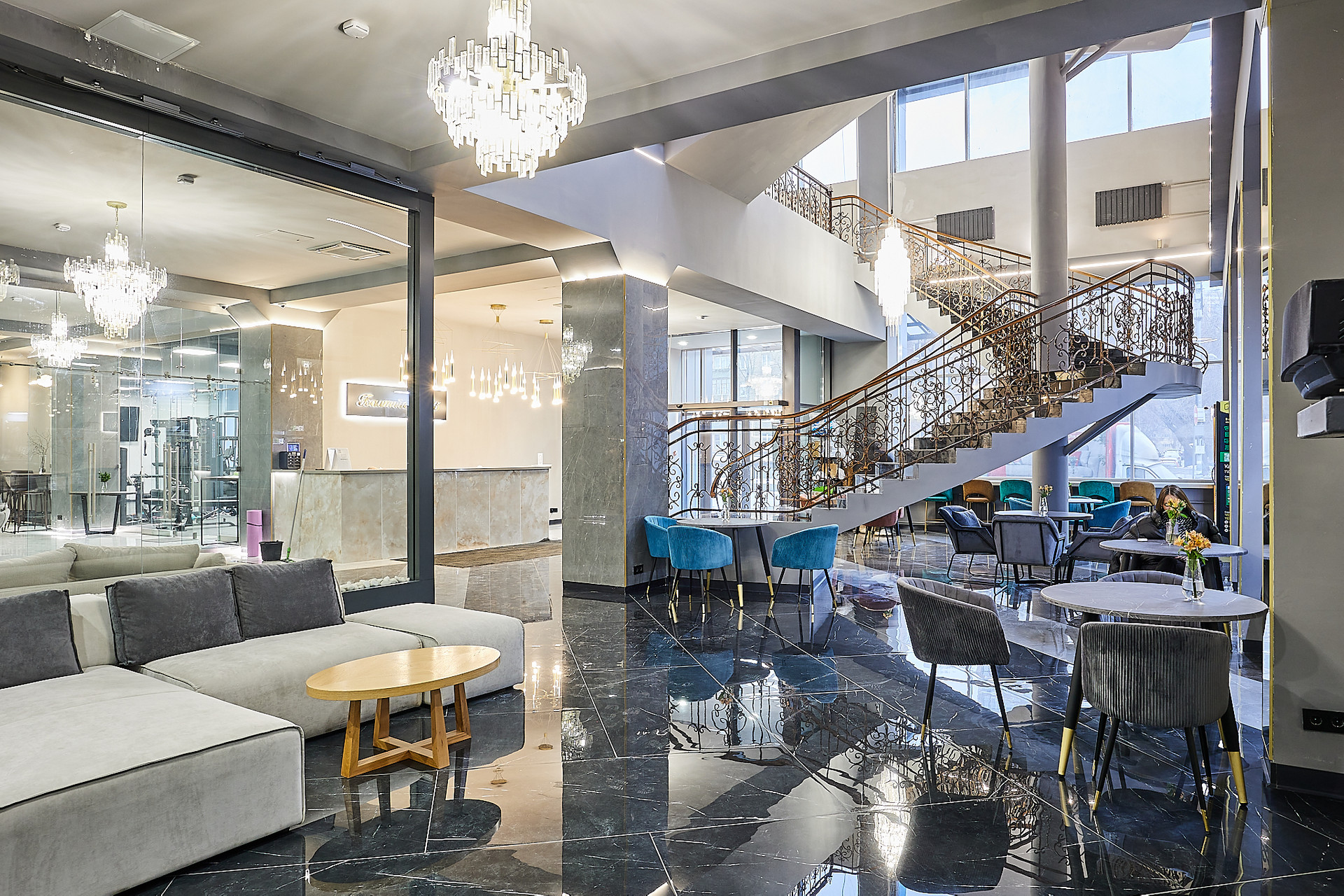 Для жителей лофта- бесплатный тренажёрный зал, стоянка для велосипедов, лаунж зоны, переговорки. Шикарная входная группа с ресепшн, охраной + видеонаблюдением, клинингом, мебелированная панорамная терраса на крыше, кинозал.