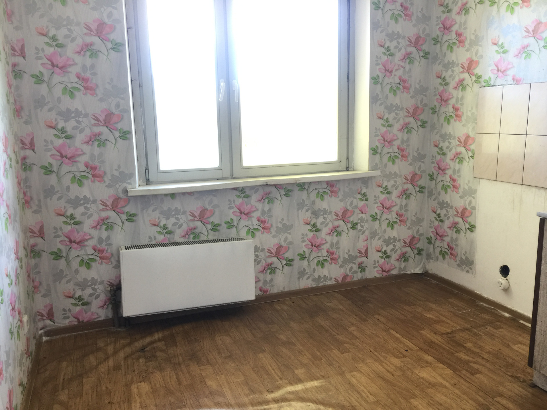 Квартира-студия на 1 высоком этаже 19 этажного панельного дома. Высота от земли до подоконника 2,15 метра. Окно пластиковое, выходит на улицу, солнечная сторона. Квартира требует вложений. . Подъезд чистый. В коридоре сделан чистовой ремонт: декоративная штукатурка стен, на полу керамогранит, натяжной потолок ,светильники с датчиком движения. Во дворе детская и спортивная площадки, достаточно мест для парковки.