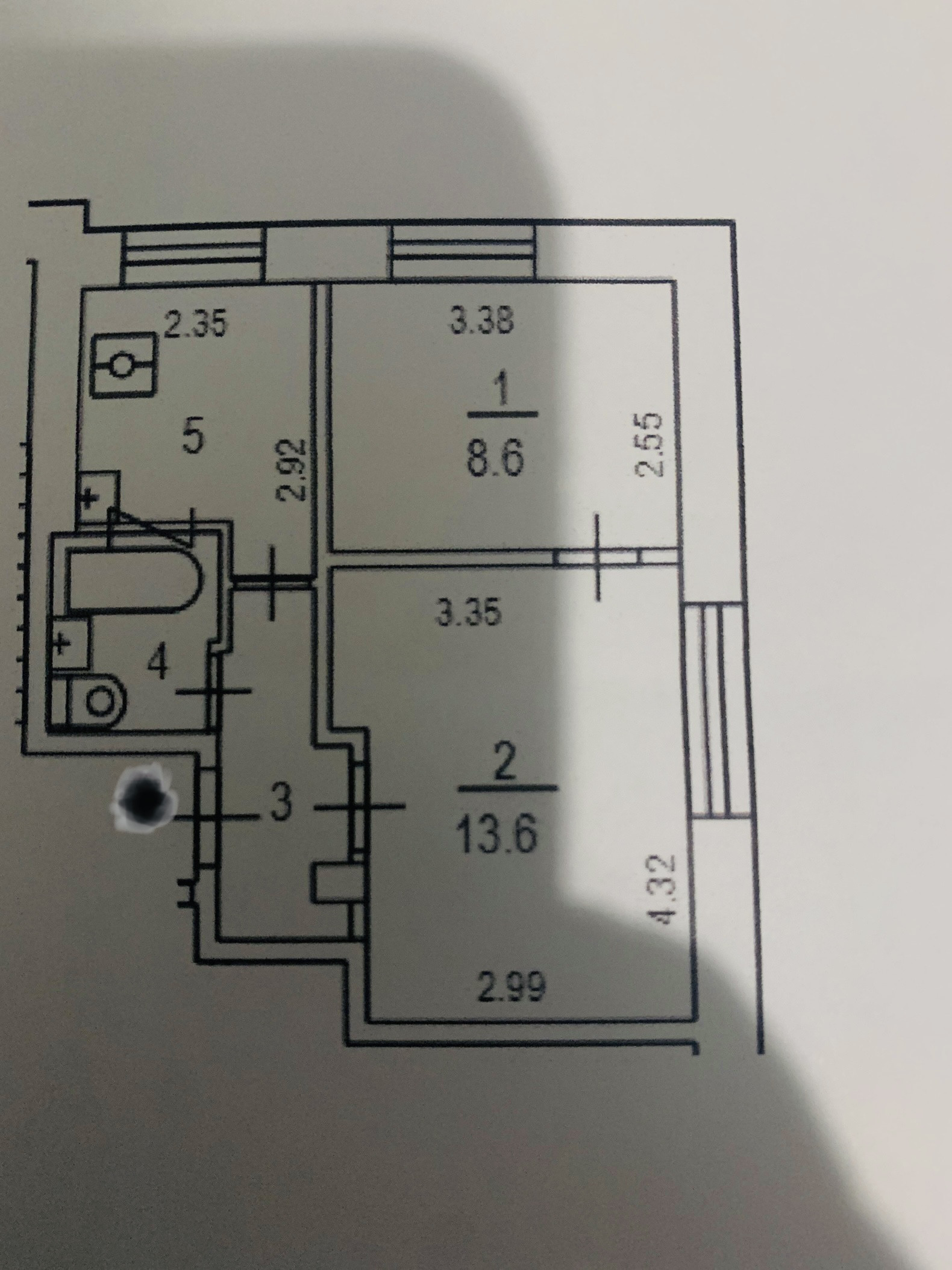 Общая площадь 34.7 м2
